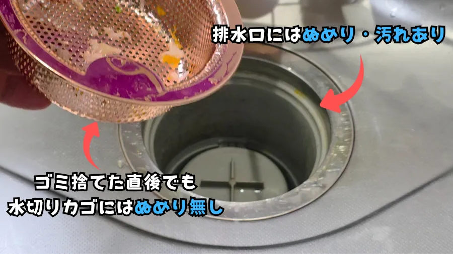 もちろん排水口のお掃除の手間も変わらずでしたが、水切りカゴのぬめりがないのが気持ち良すぎて結果オーライ!って感じにはなりましたね(笑)
